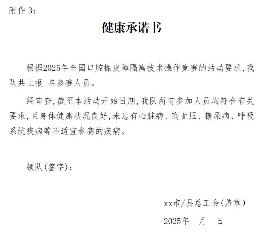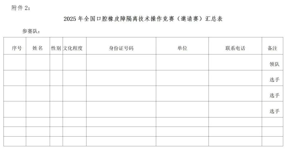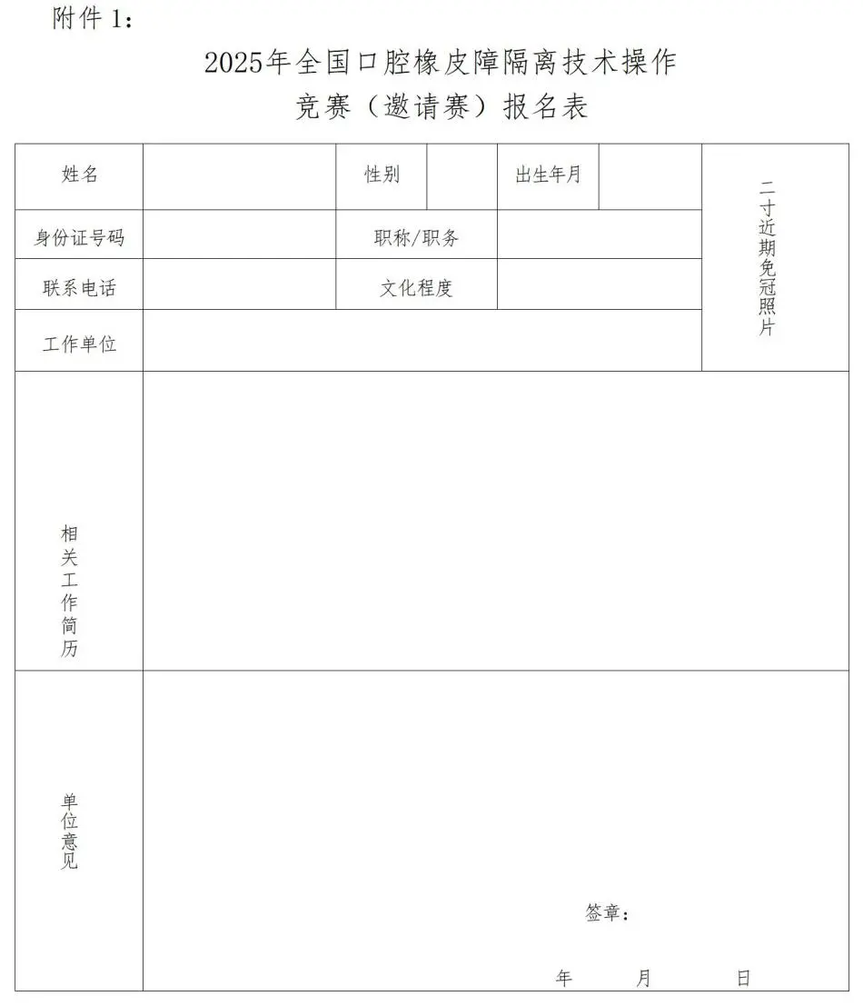 1.2025年全国口腔橡皮障隔离技术操作竞赛(全国邀请赛)报名表