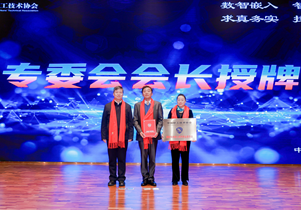理事长李世明为数智科技嵌入技术专业委员会颁发牌匾,为专委会会长项桂香颁发铭牌和证书,为专家委员会主任韩保刚颁发证书。