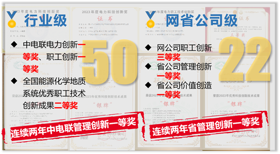 工作室年均获得各级科技资金近百万,累计获得成果转化收入50万,成果获得中电联电力创新一等奖、中电联职工创新一等奖等分子公司及以上荣誉102项。累计出版专著6本,发表核心论文30余篇,授权专利40项。