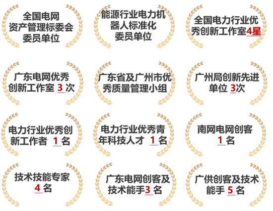 工作室先后获评全国电网资产管理标委会委员单位、能源行业电力机器人标准化委员单位、全国电力行业4星优秀创新工作室、广东电网优秀创新工作室等荣誉。