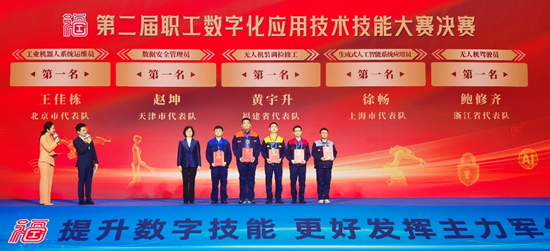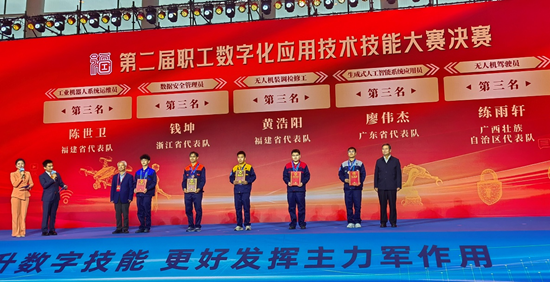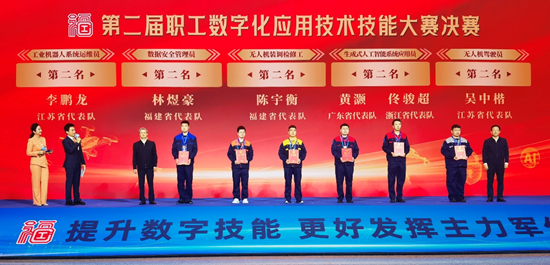11月13日上午,第二届职工数字化应用技术技能大赛在福州海峡国际会展中心闭幕,84人分获5个工种的一、二、三等奖。当中华全国总工会副主席、书记处书记马璐,将五块金牌分别授予五位大赛冠军时,343人决赛、8000人备赛、300万人参赛、亿万职工观赛的第二届职工数字化应用技术技能大赛正式落幕。