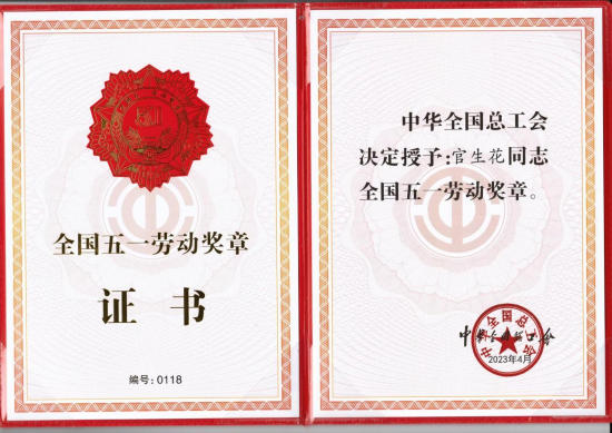2023年官生花获“全国五一劳动奖章”