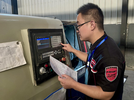 在轴承车加工技能操作比赛现场,参赛选手熟练地调试轴承套圈车工工装,并依据现场提供的图纸要求编写车加工数控程序。启动键按下的瞬间,机器轰鸣。