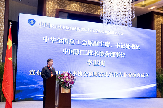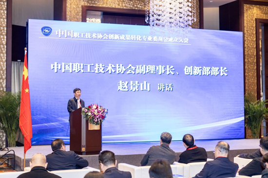 中国技协副理事长赵景山宣读《关于同意成立中国职工技术协会创新成果转化专业委员会的批复》文件。