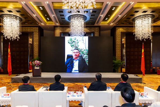 常务副会长孙长春为常务理事单位颁发牌匾和证书。