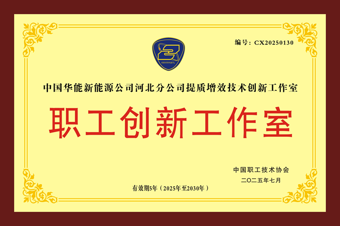 2025年7月,中国华能新能源公司河北分公司提质增效技术创新工作室被命名为“中国职工技术协会职工创新工作室”。