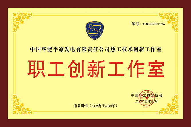 2025年7月,中国华能平凉发电有限责任公司热工技术创新工作室被命名为“中国职工技术协会职工创新工作室”。