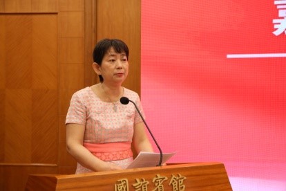 ▲中国中小商业企业协会秘书长沈亚桂到会祝贺