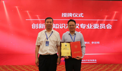 ▲李世明理事长向创新与知识产权专委会、会长任冠举授牌及证书