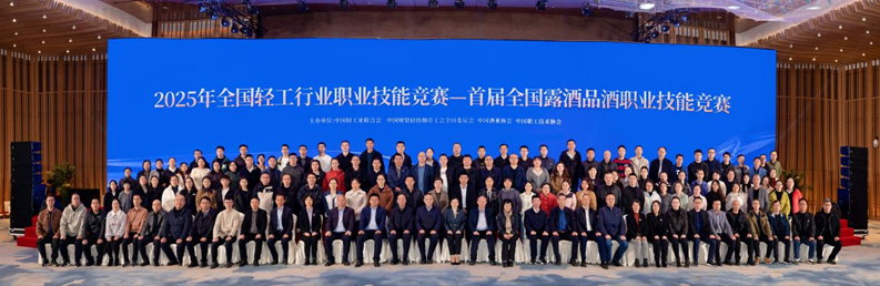 2025年11月22日,由中国轻工业联合会、中国财贸轻纺烟草工会全国委员会、中国酒业协会、中国职工技术协会联合主办的“2025年全国轻工行业职业技能竞赛——首届全国露酒品酒职业技能竞赛”在四川省宜宾市成功举办。
