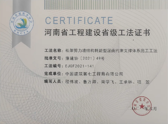 2025年7月,中建七局西南建设有限责任公司鲁万卿创新工作室被命名为“中国职工技术协会职工创新工作室”。