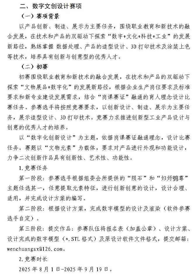 2.数字文创设计赛项请将报名表及作品按要求递交至邮箱wenchuangsx@126.com。