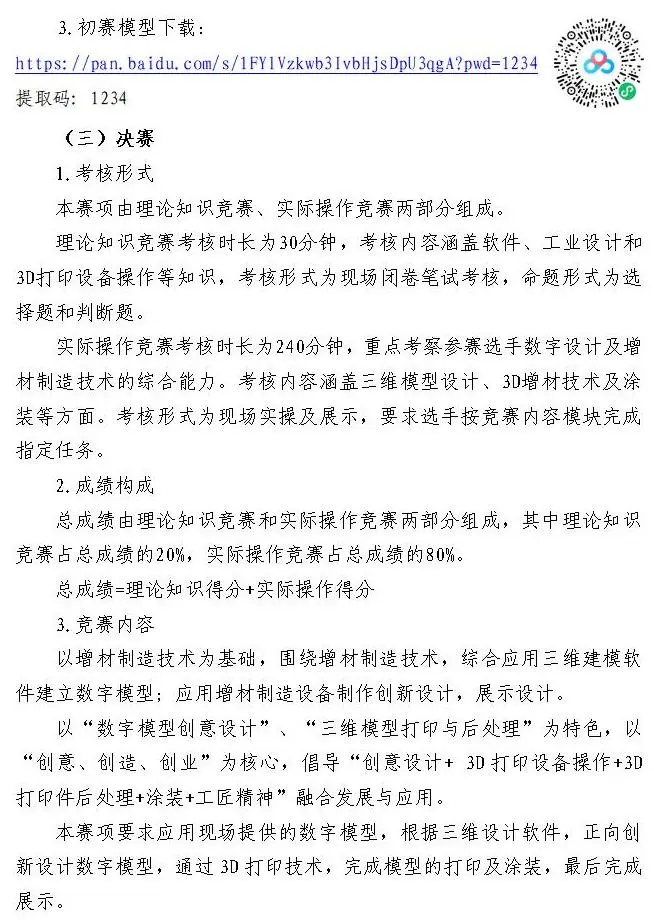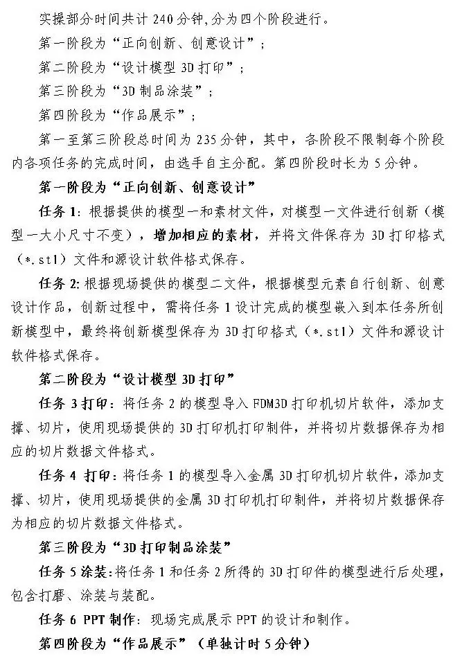 2.数字文创设计。本赛项面向增材制造技术应用、机械设计与制造、虚拟现实技术等相关专业,旨在培养服务于模型设计、3D打印、数字文创、数字文旅、教育培训等产业需求的高素质技能人才,着重提升参赛者在新产品设计、三维造型设计、3D打印技术、文物复仿制、虚拟现实技术领域的综合应用能力。技术体系涵盖三维建模设计、金属机3D打印操作、FDM3D打印及操作、文物复仿制后处理及涂装等核心技能。对应新产品开发工程师、文创设计、三维建模师、3D打印操作员、文物复仿制工程师等职业岗位。