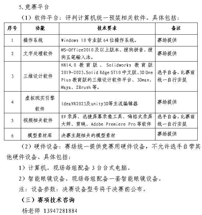 (二)赛事平台由支持单位免费提供使用。请参赛队使用正版软件。