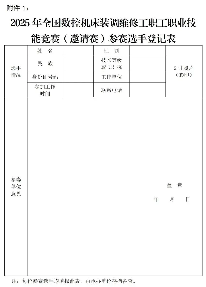 1.2025年全国数控机床装调维修工职工职业技能竞赛(邀请赛)参赛选手登记表