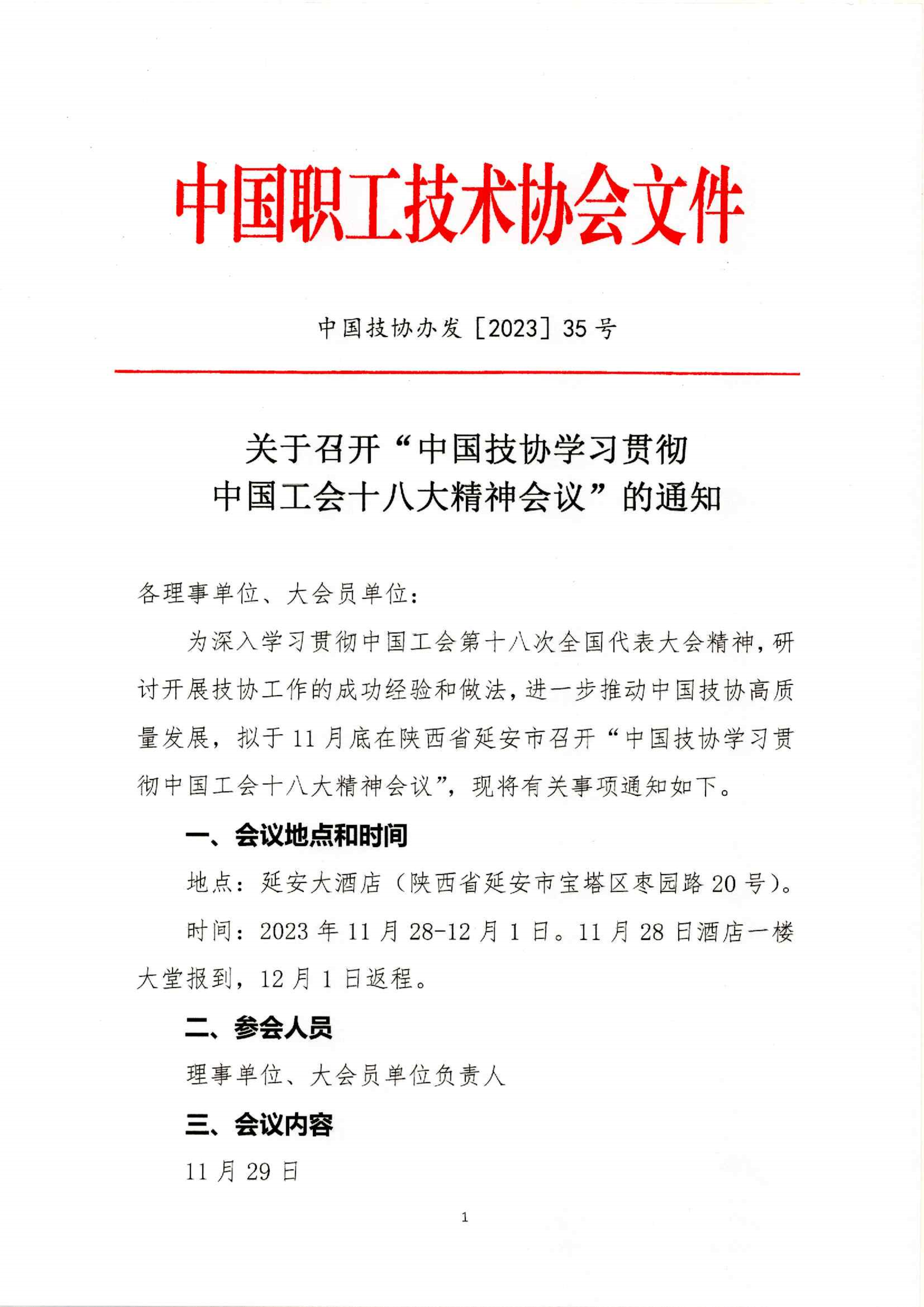 关于召开“中国技协学习贯彻中国工会十八大精神会议”的通知