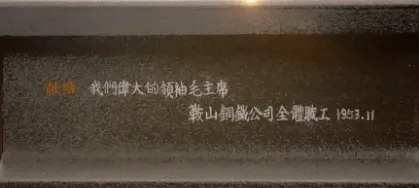1953年12月8日,鞍山钢铁公司大型轧钢厂试轧成功中国第一根长12.5米、重43公斤的重型钢轨。该重型钢轨轧制采用 11 个孔型的轧机,能将钢坯逐步轧制成符合标准的钢轨,整个过程温度不能低于1200度。鞍山钢铁全体职工将第一根重型钢轨的一段赠送给毛泽东主席。